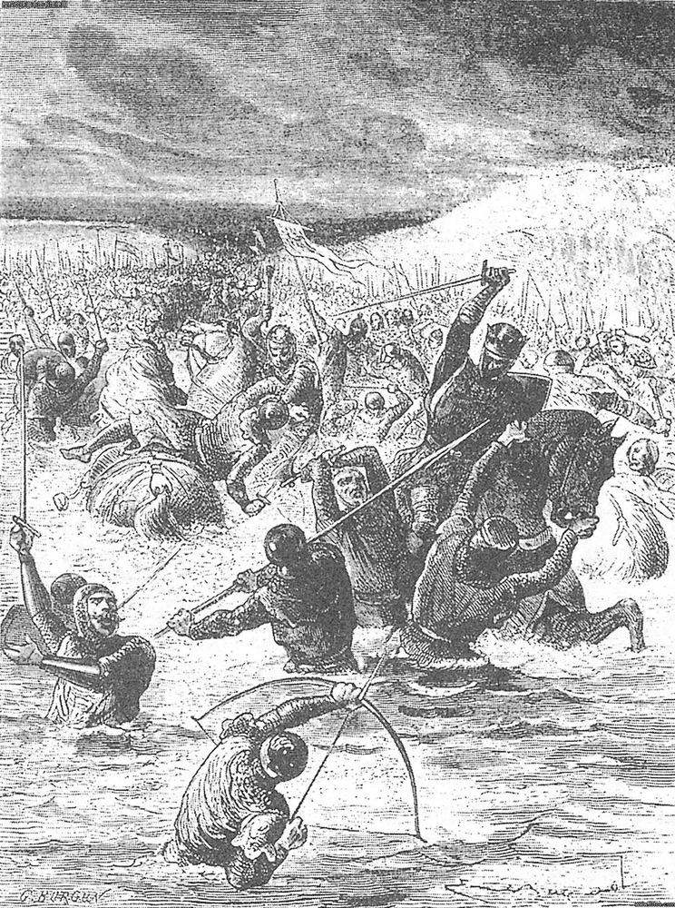1346年8月,百年战争期间,英军在布朗克-塔克过索姆河,遭到法军追击。