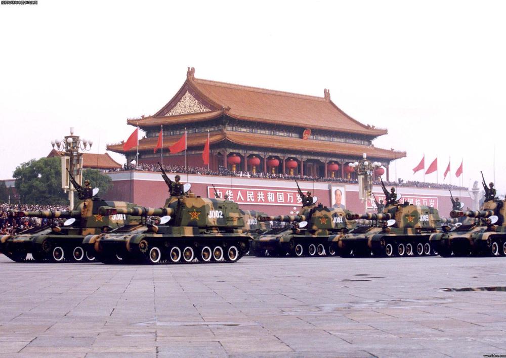 1999年10月1日,天安门广场,国庆50周年阅兵式上的加农炮。
