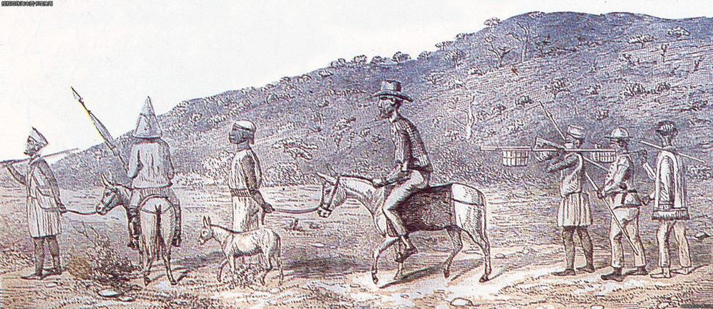 19世纪,骑驴的非洲探险者,1860年伯顿《中非大湖区》。理查德?伯顿(Richard Burton,1821~1890),英国军官、探险家,与约翰?汉宁?斯皮克(John Hanning Speke,1827~1864)成为最早到达非洲坦噶尼喀湖的欧洲人。