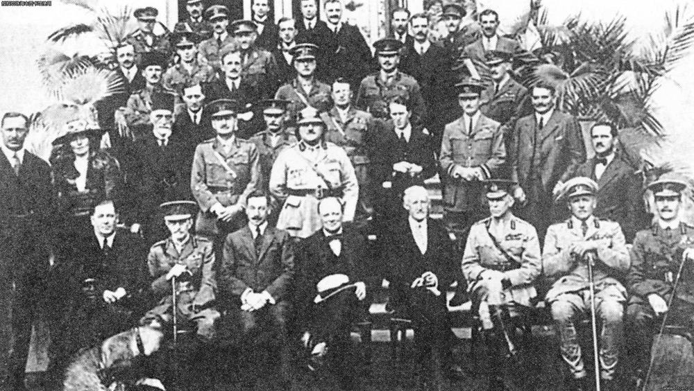 1921年3月,丘吉尔(中坐者)参加埃及开罗会议。