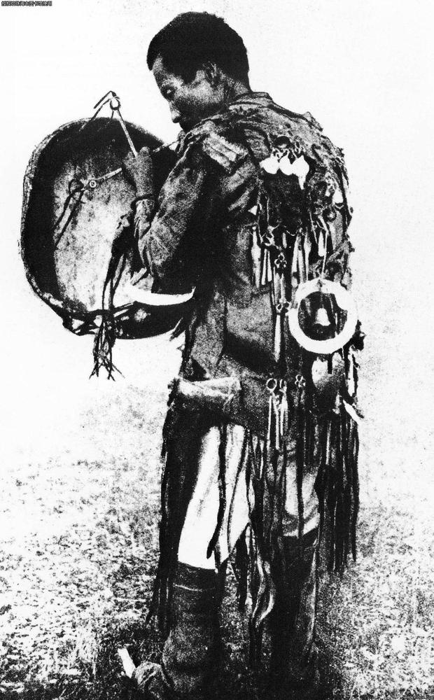 中国满族,萨满教的祭师。萨满教是世界上最古老的宗教之一。