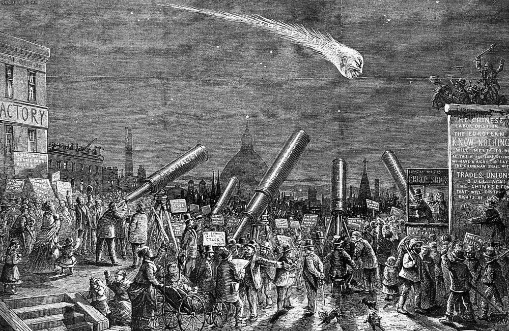 美国早期漫画:全国都可以看到的一颗新彗星。暗示华人劳工将出现在美国每一角落。