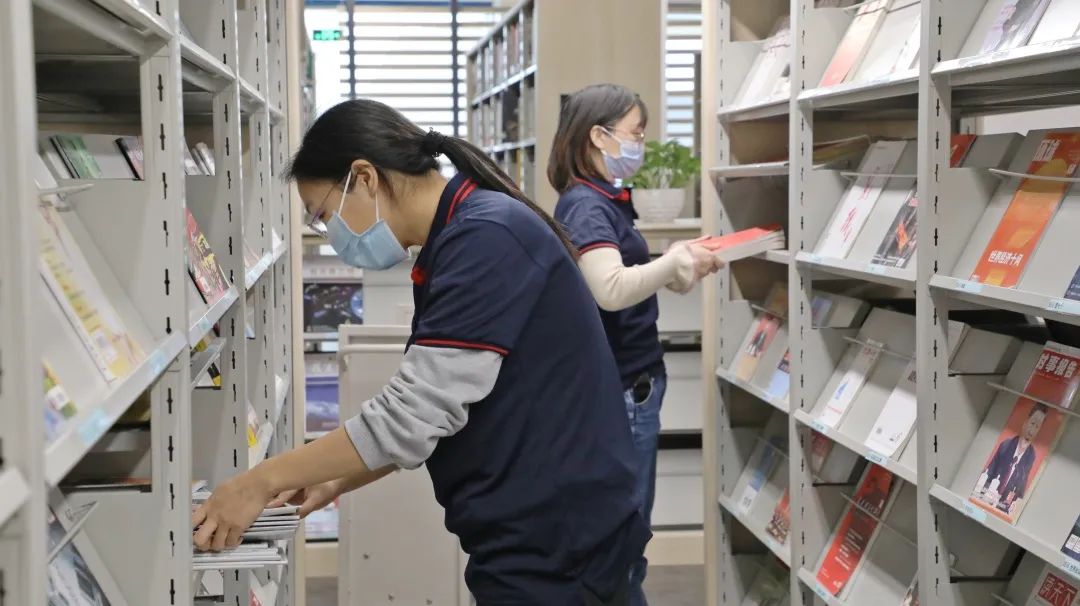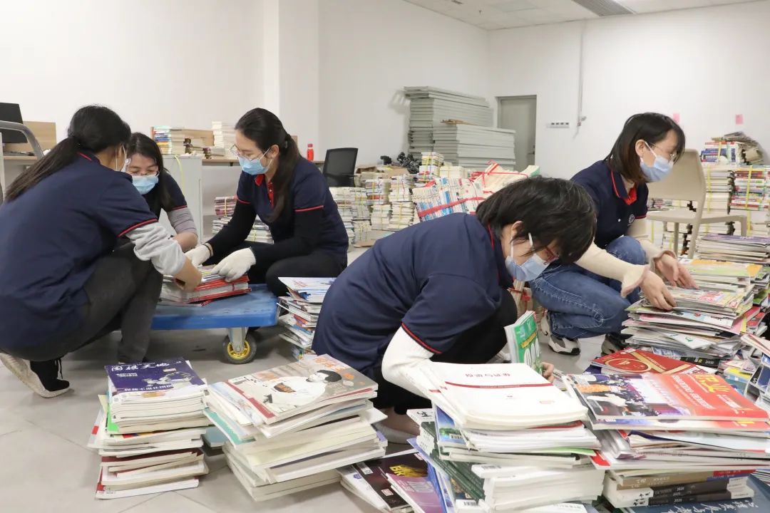 19日上午,图书馆工作人员干劲十足地在书架上挑选着《青年文摘》《意林》《半月谈》等涉及文学艺术、卫生健康、少儿绘本等各个方面的书刊。而另一边,工作人员也在利落地将精选的杂志、绘本细心地分装打包。