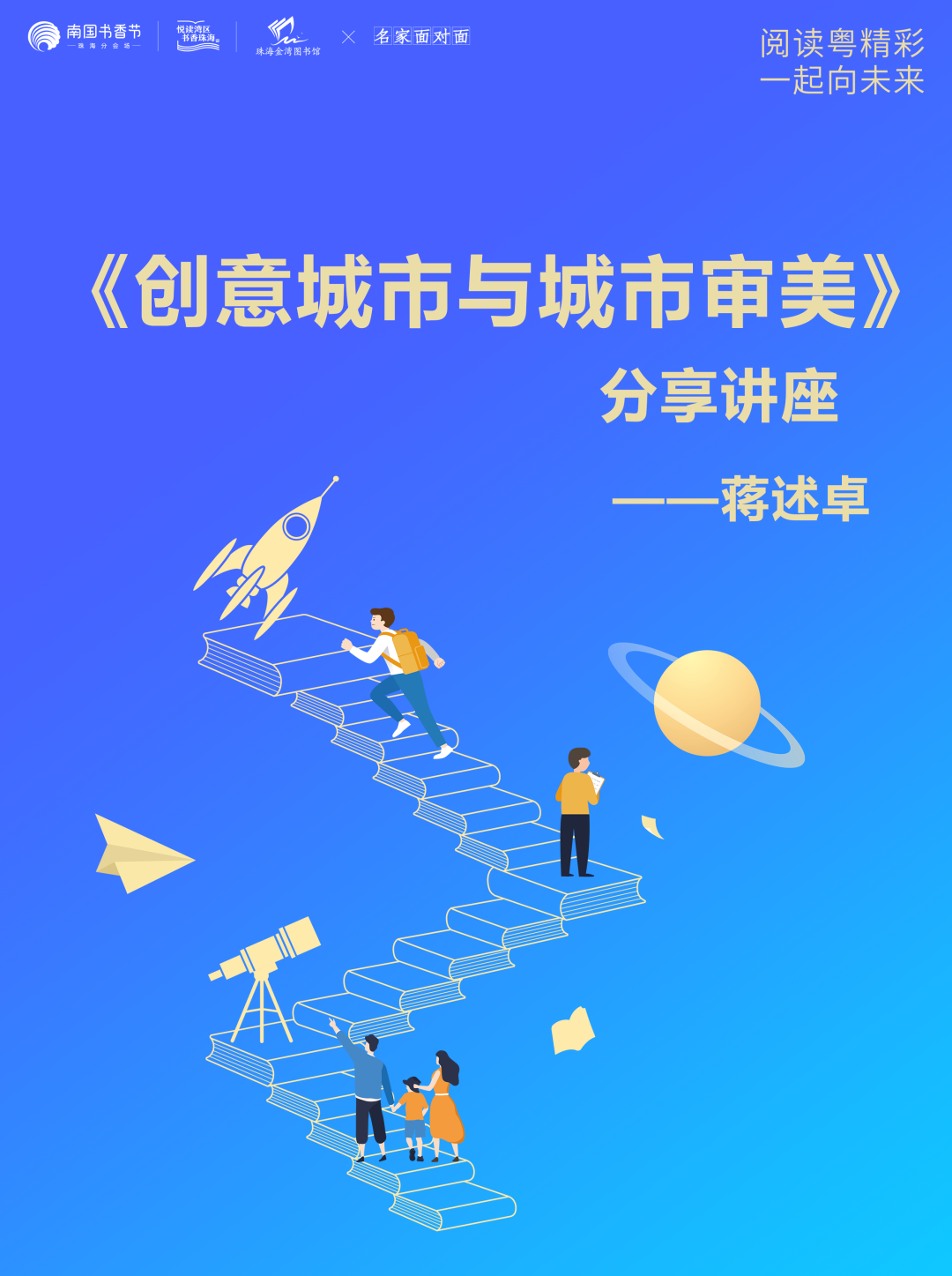 城市文学永远是文学写作的一大题材,也是每个人生命中不可回避之处。城市文学将目光投向当下的城市生活。城市的每一个新动向,从物质景观的巨变到精神世界的潮流涌动,都会在笔下得到精确的描绘。城市与人,从来没有割裂过联系,人文环境和居住环境共同构成了一个城市的图景。那么,一座城市的审美高地靠什么来创新?人们如何“诗意地栖居”在城市呢? 珠海南国书香节期间,作为城市文化与城市审美研究的领军人物之一、国内知名文艺批评家——蒋述卓将做客金图,分别在金湾区图书馆分会场(8月20日下午)和珠海国际会展中心主会场(8月21日上午)为读者带来关于“创意城市与城市审美”和“我们如何从古典诗词中汲取生活智慧”两场分享会。