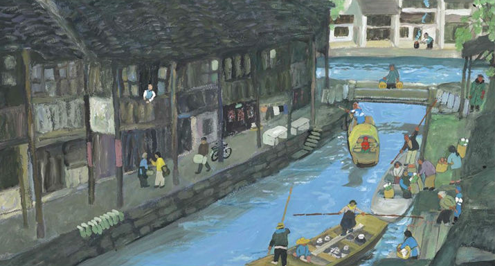 故事被放到了一个江南的水乡。绘本刚开始的几幅画面是雾蒙蒙的,湖面呈淡绿色,那是早晨水乡的朦胧感。“我想呈现那一波蓝水似乎轻轻被拨动的那种灵动和小镇里空气流动的那种微妙感。”太阳初生画面色彩变得浓郁,各种意象渐次出场。“这个就是源于我的童年深处的记忆。如果可以通过图画来把这些留住,也算是对大自然的另一种形式的谢恩吧。”周翔老师颇为耐心地把他隐藏在绘本中的创作心思向读者娓娓道来。原来,这本充满诗意的绘本竟饱含了周翔老师对童年的回忆、对初心的呼唤和对真善美的追求。
