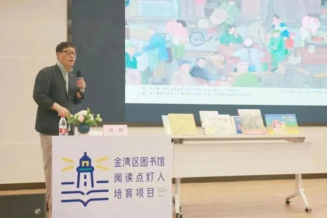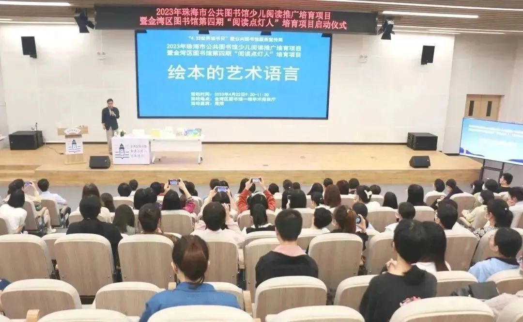 一盏灯,点亮孩子的阅读世界。一行人,点亮全民的阅读之光。4月22日,2023年珠海市公共图书馆少儿阅读推广培育项目暨金湾区图书馆第四期“阅读点灯人”培育项目的启动仪式在金湾区图书馆一楼学术报告厅举行。启动仪式上,全体阅读点灯人和读者共同参与点亮象征着阅读的灯塔,一场覆盖全市的阅读浪潮即将徐徐铺开。一批热爱阅读推广的志愿者汇聚在一起,从金图出发,让阅读像灯塔一样去照亮每个读者的生活。 米拉说:“每一本书都有生命!”的确,每一本绘本都有生命,每个生命都有属于自己的故事。启动仪式后,知名艺术家,绘本编辑、创作者周翔老师为我们带来了金湾区图书馆第四期“阅读点灯人”培育项目的启动讲座——《绘本的艺术语言》,向现场的读者分享绘本中那一个个美妙而温馨的故事。