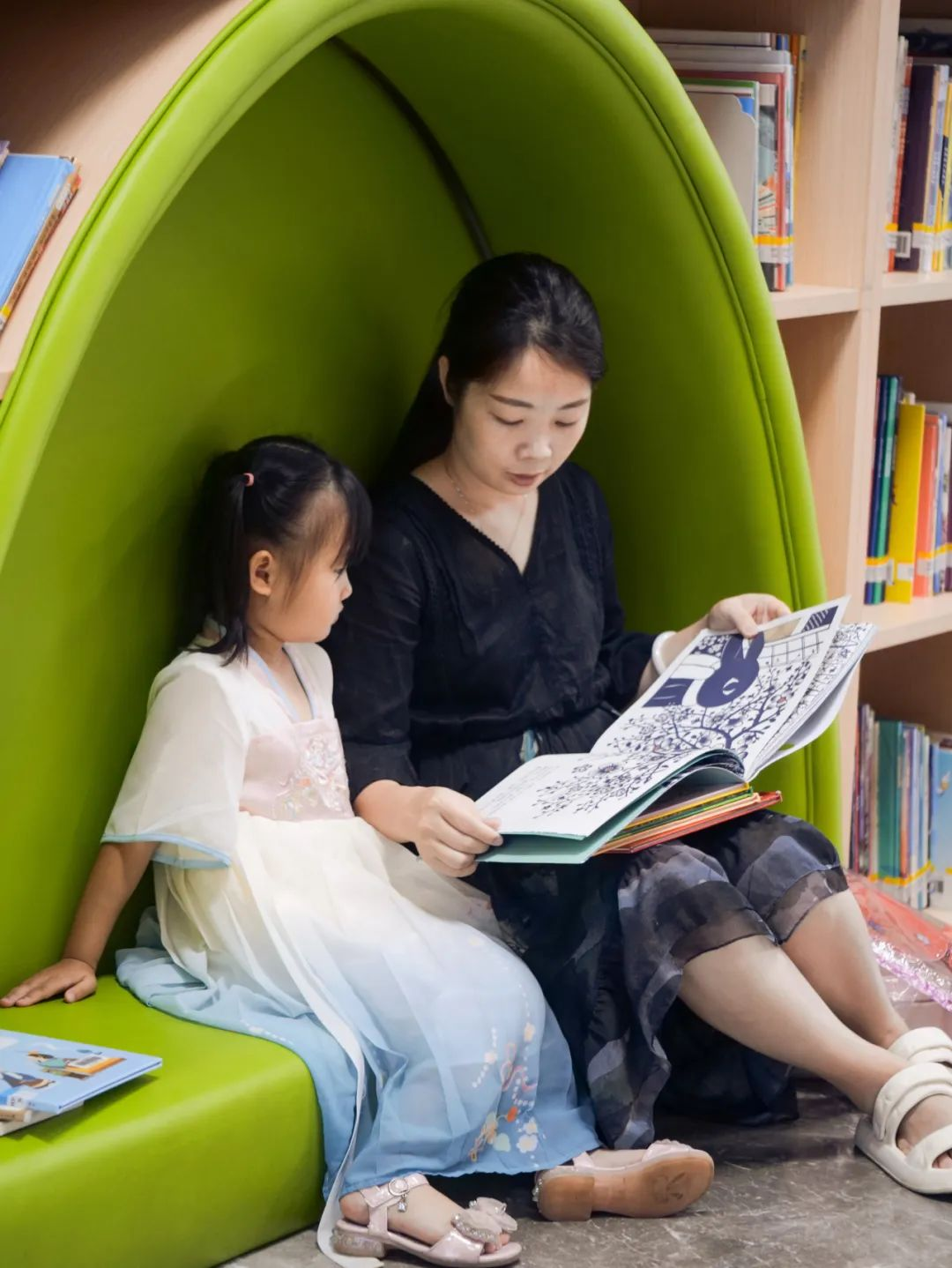 亲子间悦读的温馨画面