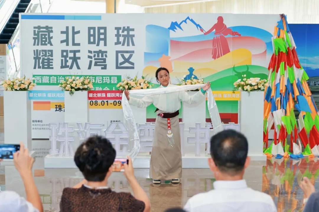 藏北的美丽日光之城与湾区西岸的活力新城在这个暑假悄然相遇,这是高原藏区与粤港澳大湾区两地的双向奔赴。“藏北明珠  耀跃湾区”——西藏自治区那曲市尼玛县民族融合人文展·珠海站展览正在珠海金湾这片土地上绽放出异彩纷呈的光芒。这不仅仅是一场展览,它还是藏北明珠与湾区之间的一次深情对话。来自藏北明珠——尼玛县的孩子们身着盛装,踏着欢快的舞步,为金湾的小伙伴们演绎了一场跨越地域的歌舞盛宴。此刻,不同的民族文化如繁星般璀璨,彼此辉映,照亮了孩子们纯真的笑脸。