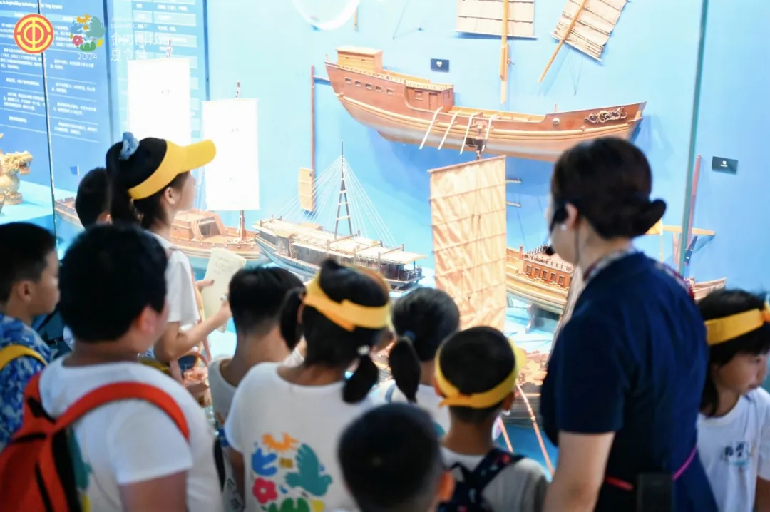 而在广州海事博物馆内,孩子们则参观了“七海扬帆”等展览,了解了古代的航海历史盛况。各式各样的海底珍宝与栩栩如生的实景模型,让他们仿佛置身于唐宋时期的广州港,体验着那段海上丝绸之路的辉煌岁月。孩子们还得知了市舶司墓碑上“海事”二字起源的故事,而讲解员则生动地从陆上丝绸之路讲到海上丝绸之路,孩子们也深刻感受到了那条古老海上丝绸之路的遗风余韵……孩子们还体验了“南海大冒险”桌游体验活动。这里,历史与想象交织,孩子们围坐在精致的棋盘旁——古老的船帆、精美的瓷器、神秘的航海图……这一切都在游戏中栩栩如生地呈现出来。他们不仅在游戏中体验到了探索与闯关的乐趣,更在轻松愉快的氛围中学习到了广州作为古代海上贸易重镇的历史渊源……