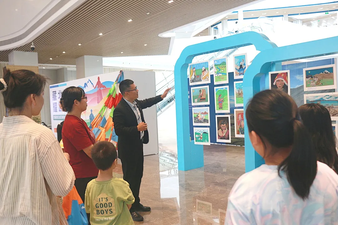 展览现场,一幅幅摄影作品展示了藏北的美丽风光以及当地人民世代相传的传统生活方式;62幅由尼玛县中小学生创作的画作,经由中国美术家协会漫画艺委会、动漫艺委会和少儿美术艺委会的多位艺术家悉心指导,每一幅都色彩斑斓、充满想象力,流露出孩子们对大自然深深的敬畏与热爱之情;互动环节中的“大地之书”诗歌共创和“童绘山海”两地儿童艺术共创活动,则进一步促进了湾区与藏区两地的跨文化交流。