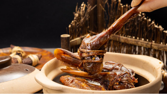 苏大笑猪脚姜精选优质健康食材,制作过程中不添加一滴水,完全依靠白米醋、米酒、生姜以及猪蹄中的脂质,融合成为浓郁的汁水,色泽诱人,肉香、姜香与醋香持续在空中弥散。