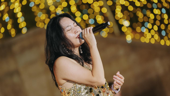 经典歌曲《不再犹豫》《红日》引发全场合唱,声浪穿透整个玖洲道夜空。