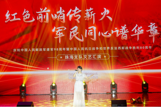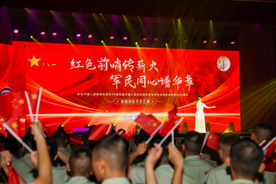 为庆祝中国人民解放军建军98周年暨中国人民抗日战争和世界反法西斯战争胜利80周年,充分发挥全国典型“红色前哨连”的示范引领作用,7月30日晚,由珠海市文化馆指导,武警珠海支队主办的“红色前哨传薪火 军民同心谱华章”——“八一”主题军地联欢晚会在珠海市公安局交警支队礼堂隆重举办。珠海市副市长、公安局局长乔雷同志,中共珠海市委宣传部副部长刘洁琼同志,珠海市消防救援支队政治委员彭辉庭同志和其他相关单位的领导嘉宾出席观看。