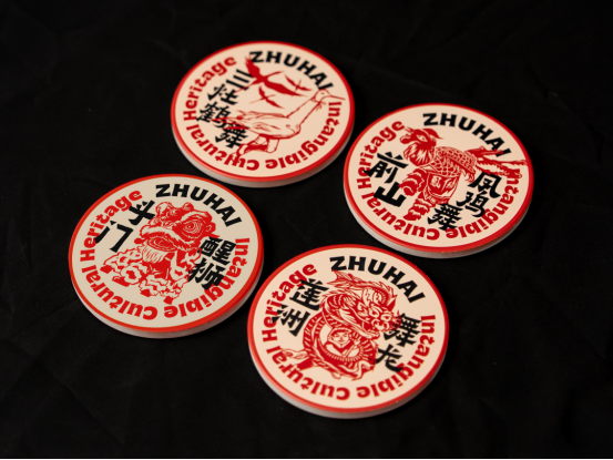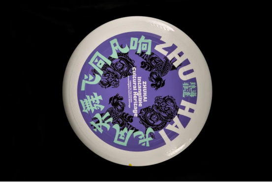 将珠海非遗中龙和凤的元素与运动活力相结合,飞盘表面印有莲洲舞龙和前山凤鸡图案,让非遗元素在运动中传播。