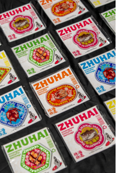 选取珠海非遗中与美食相关的元素,将横山鸭扎包、大赤坎明火叉烧烧排骨、虎山金巢琵琶鸭、上横黄沙蚬、白蕉海鲈这些蕴含着匠心的非遗好味道以冰箱贴的形式靓丽展现。