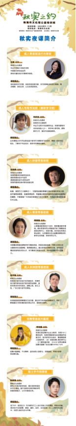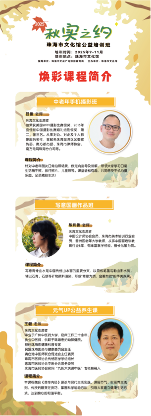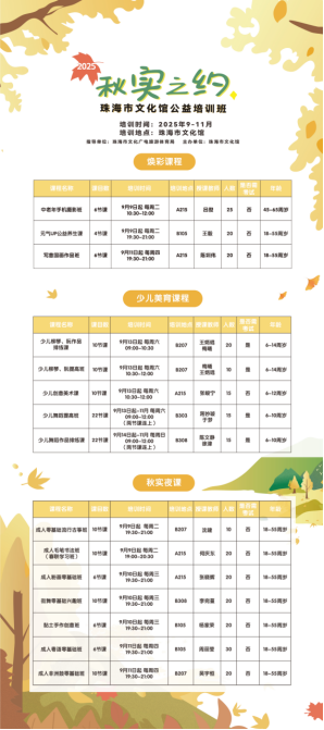 【秋实之约】珠海市文化馆公益培训班将在9月1日10时开启报名通道!