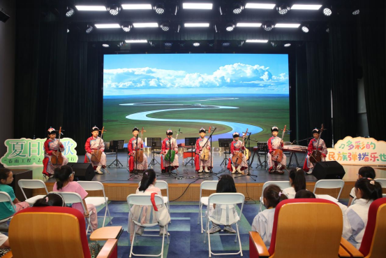 活动现场,来自呼和浩特市青少年活动中心马头琴乐团的孩子们献上了一曲富有草原风情的《云青马》,以其悠远辽阔的琴声为演出增添了别样韵味。南北乐器的精彩对话,不仅展现了中华民族音乐的多元一体,更通过音乐的语言促进了文化的交流与融合。“原来阮家族有这么多成员!”“南方的琵琶演奏风格好细腻,这次交流让我对民乐有了全新的认识。”活动结束后,到场的观众朋友们兴奋地表达了自己的感受。