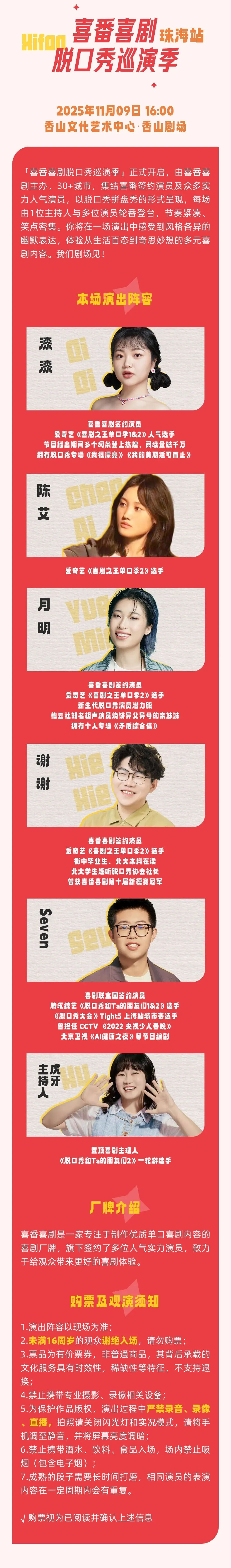 以书引剧、以剧促读 香洲区图书馆、珠海华发中演大剧院联合推出 “阅见舞台”系列阅读推广活动 本期活动 为你推荐 笑对人生书单 评论区参与互动将有机会与 《喜剧之王单口季2》 《脱口秀和Ta的朋友们2》 人气选手在剧场相聚 演出时间 11月9日(周日)16:00 演出地点 香山文化艺术中心·香山剧场 演出时长 约90分钟 (无中场休息,实际演出时长以现场为准) 入场须知 未满16周岁的观众谢绝入场 点击展开更多精彩 刘震云 《一句顶一万句》的故事很简单,小说的前半部写的是过去:孤独无助的吴摩西失去唯一能够“说得上话”的养女,为了寻找,走出延津;小说的后半部写的是现在:吴摩西养女的儿子牛爱国,同样为了摆脱孤独寻找“说得上话”的朋友,走向延津。一走一来,延宕百年。书中的人物大部分是中国最底层的老百姓,偏偏安排了一个意大利牧师老詹。 F3阅览区B17架B面03列06层 梁实秋 真正的勇士能够在看清了生活的真相后依然热爱生活,在不违背天地之道的情况下成为一个自由而快乐的人。全面收录《中年》《送行》《猫的故事》《喝茶》《好汉》等60篇梁式最为广为传颂佳作,篇篇锦绣,经典集萃,从情感/美食/中庸/人性/高雅/家国/人事/读书等角度,完美还原并完整呈现先生内心湛然,通透圆融的精神世界。云山苍苍,江水泱泱;先生之风,山高水长。感悟大师生活智慧,于喧嚣尘世,唯愿你少些不安,多一些内心的平静与自在。好好生活,不言放弃。 F3阅览区B12架B面03列01层 豆瓣评分8.5 林欣浩 宇宙的外面是什么? 世界会不会是假的? 这个世界有没有终极真理? 人生的意义是什么? 你知道吗,你想过或者没想过的这些奇奇怪怪的问题,早在几千年前就被哲学家们一本正经地提出,挖空心思地找证据,面红耳赤地争论过了。在整个世界忙着探索、开垦、打仗、上天、发展的漫长历史中,这帮哲学家们却神经质地死磕这个世界的真相和人生的意义,就好像一个网络游戏里的角色试图琢磨自己手里武器的代码是什么…… 翻开本书,从神烦的苏格拉底开始,了解哲学家们穷其一生苦思的问题及最终答案。 F2阅览区A01架A面02列04层 笑着告别 豆瓣评分8.1 [法]纪尧姆·巴伊 纪尧姆·巴伊是“法国人最喜爱的殡葬师”。 他用百十则温情、幽默的真实记录摹画出丧礼中的人心、亲情、世态,讲述从业者的愁闷与喜乐。 小故事、短篇小说、剧本、书信、词语解析,多样的写作体裁化解了主题的沉重,营造轻松、流畅的阅读体验。 读完本书,想必您对死亡和殡葬行业的看法会有所改变。 葬礼是一个沉重、艰难、庄严的时刻。殡葬师是个低调而不事张扬的行业。但有时候,与亲人的最后告别不乏戏剧性。围绕悼念仪式,不时上演着各种滑稽、怪诞的场面。忍着笑,噙着泪,纪尧姆•巴伊带我们进入殡葬师的工作日常。而读者您,请做好哭了又笑笑了又哭的准备。 F3阅览区B06架A面01列02层 不开玩笑 豆瓣评分8.0 史炎 幽默感真的是天生的吗?“好笑”的来源是什么?从新建word文档到一个成熟的段子之间有多远?谐音梗真的是烂梗吗?打开这本书,看国内脱口秀元老级人物,知名脱口秀演员、培训师史炎关于理解幽默、创造欢笑的一 切经验。 “幽默在表达和沟通的过程中是提升效率的利器,作用无可替代——当你把人逗笑时,对方把他的心智短暂地交给了你。”作者用让人笑得停不下来的文笔,将自己从业十数年的幽默秘籍全盘托出,无论你是想对脱口秀有更多的了解,还是想在演讲、沟通中大放异彩,或者只是希望寻求一些“幽默力”的提升,成为一个有趣的人,这本书都不会让你失望。 F2阅览区B18架A面03列04层 【香洲的人】 有趣的邻里、个性的店主、有爱的志愿者…… 【香洲的事】 社区趣闻、精彩演艺、日常生活的小确幸与小烦恼…… 【香洲的风景】 最韵味历史街区、最浪漫海岸、最美城市公园…… 【香洲的吃喝玩乐】 地道美食、特色小店、逛吃citywalk…… 围绕“香洲生活”展开,与“香洲”有关,能让你会心一笑或捧腹大笑的生活片段、观察思考,都可以成为你的创作素材! 赶紧在评论区留下你的段子,获点赞最多的一位读者,将获得喜番喜剧脱口秀巡演季·珠海站演出门票两张。 11月5日早上10点,截止活动并在评论区精选公布获奖名单。 喜番喜剧脱口秀巡演季·珠海站(合作) 香山文化艺术中心 周一闭馆 周二-日工作时间 9:00-17:30 📍 地址 珠海市香洲区健民路868号 🚌 交通指引 46路 / B10路 / Z16路 / B9路 步行约300米至香山文化艺术中心 编辑:张 婷、刘海霞 初审:陈静文 校审:程传龙 终审:李威佳