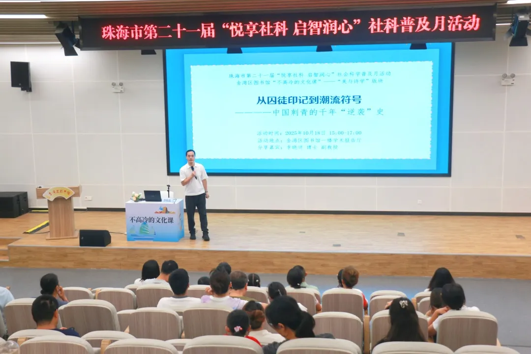 当10月18日下午的阳光透过窗棂,金图的报告厅再次充满了神秘与惊喜。“从囚徒印记到潮流符号”,李晓进副教授以其深厚的学术功底,风趣幽默地为读者们揭开了“中国刺青的千年‘逆袭’史”。他带领大家走进一扇通往“刻在皮肤上的艺术”的奇妙之门,读者们纷纷惊叹于这一古老艺术形式的生命力。