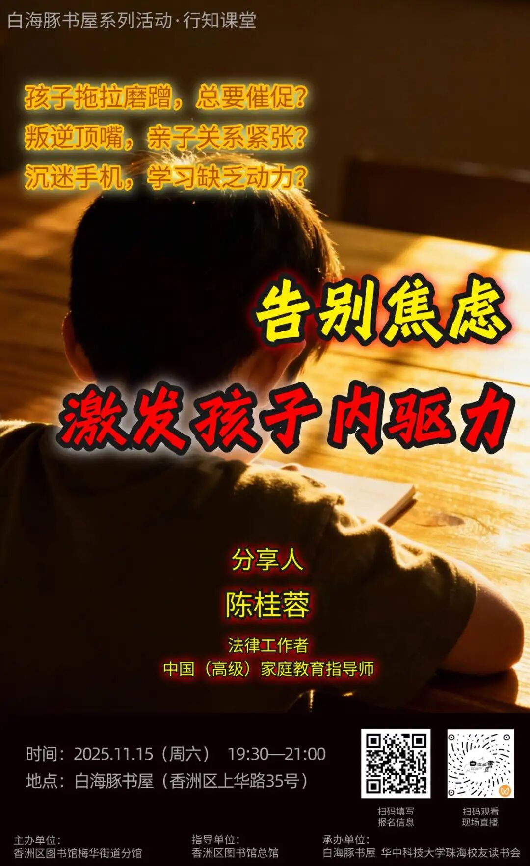 香洲区图书馆总分馆活动2025年11月15日-16日香洲区图书馆梅华街道分馆01告别焦虑 激发孩子内驱力02纪录片之夜·《寻找小糖人》END来源:香洲区图书馆梅华街道分馆
