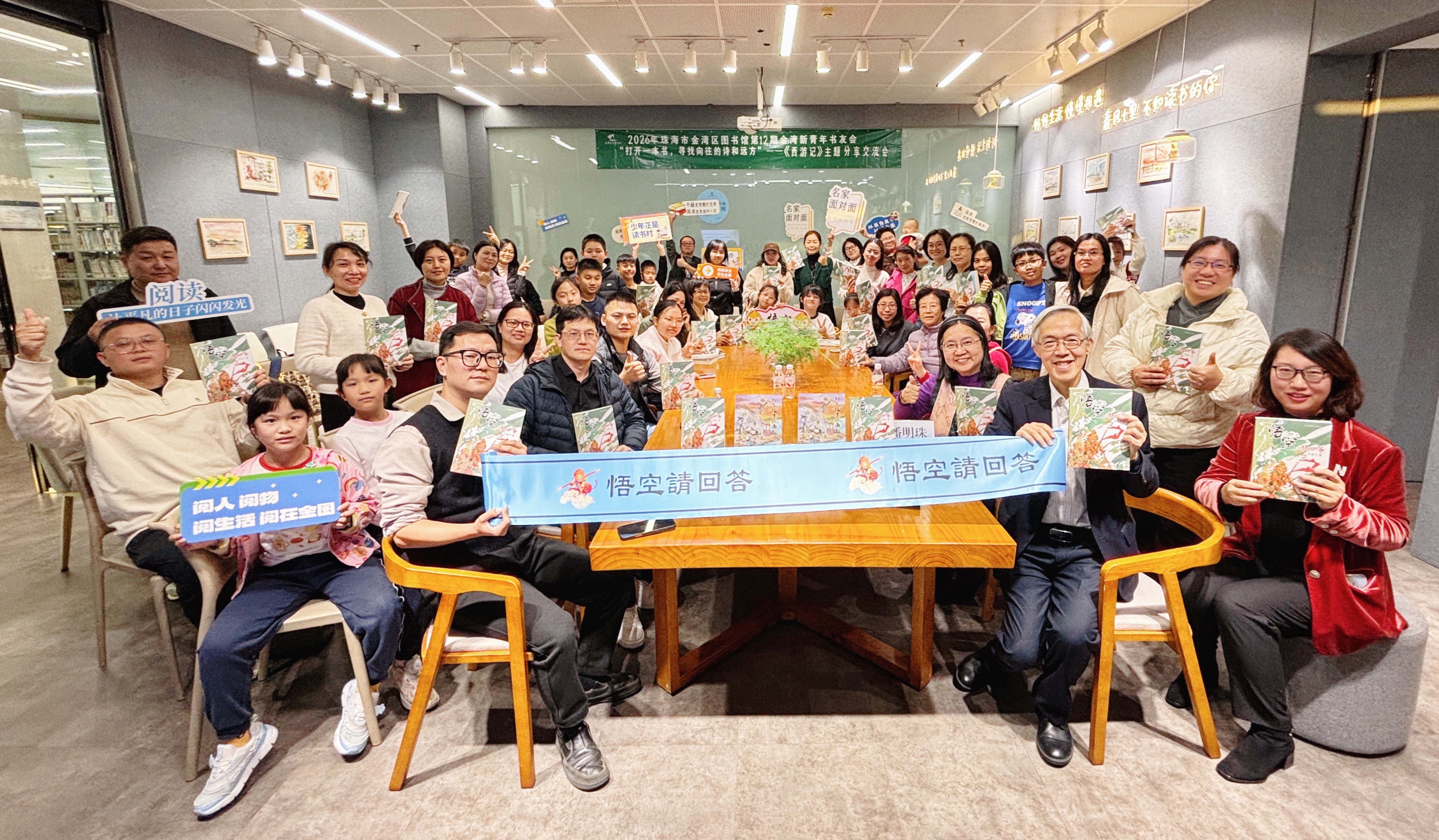 元旦假期,金湾新青年书友会热闹非凡!一场“猴”精彩的《西游记》主题分享交流会在三楼小林漫画阅读艺术空间火热上演!澳门儿童文学作家、《悟空请回答》作者彭执中老师以及香港当代儿童文学作家潘明珠老师、《红楼梦》最新校订版作者李应利老师,带领大家重温经典,畅谈西游。现场气氛热烈,读者们积极参与,共同探寻这部古典名著的时代价值与深层魅力。