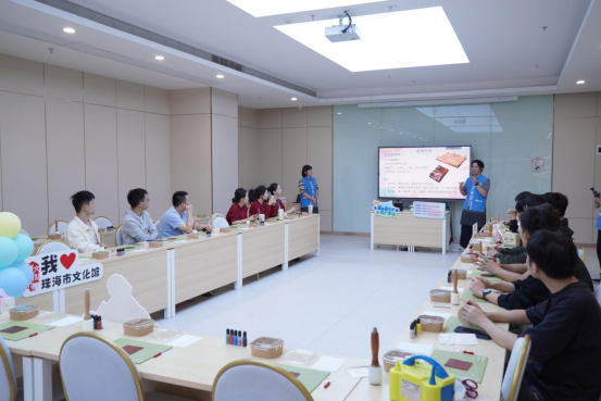 12月2日下午,一场别开生面的艺术课堂在珠海市杰理科技股份有限公司热火朝天的开展,珠海市文化志愿者们为50名企业员工们开展了宋锦珍珠画、手工皮具等艺术课程分享,与城市“打工人”们共度了能量满满,收获满满的艺术时光。