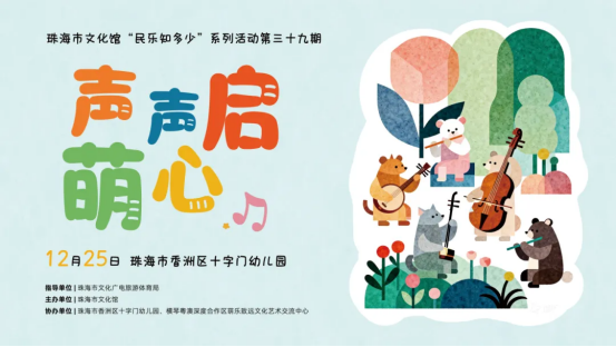 本次活动由珠海市文化广电旅游体育局指导,珠海市文化馆主办,珠海市香洲区十字门幼儿园、横琴粤澳深度合作区萌乐致远文化艺术交流中心协办。活动以“声声启萌心”为主题,是珠海市“民乐知多少”系列活动第三十九期,旨在以雅集分享的培训形式,开展民族弹拨乐雅集(知识课堂),通过讲解与互动结合的方式,引导孩子们近距离感受民族音乐的魅力,增强对传统乐器的认知与兴趣,推动民乐在少年儿童中的传播与普及。