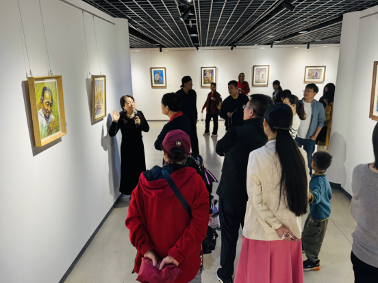 在场嘉宾与艺术爱好者共同在展厅自由参观,在色彩与线条交织的粉画作品前驻足交流,现场观展氛围轻松专注。